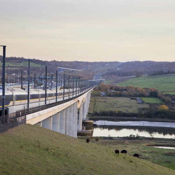 A super-fast, direct Eurostar runs daily from Amsterdam to London St Pancras International. In London tou take the train to Ashford in Kent. You will be near some beautiful destinations like the coastal town Folkstone or student city Canterbury.
