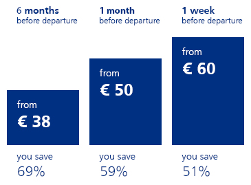 - Book as early as possibly to have the most chance of getting the cheapest tickets.