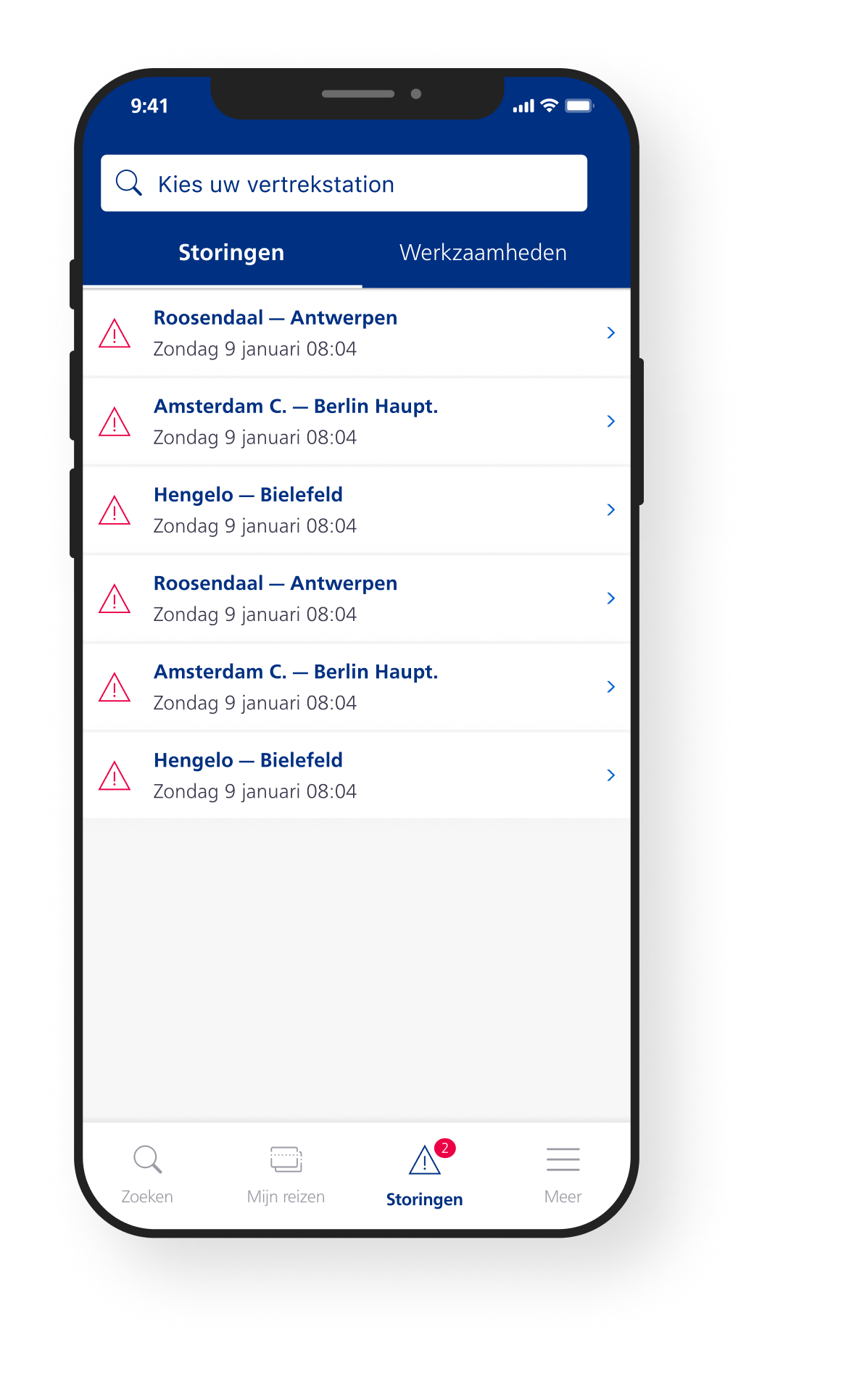 - Immediately informed in case of disruptions. Receive push notifications and search alternatives in case of a disrupted journey