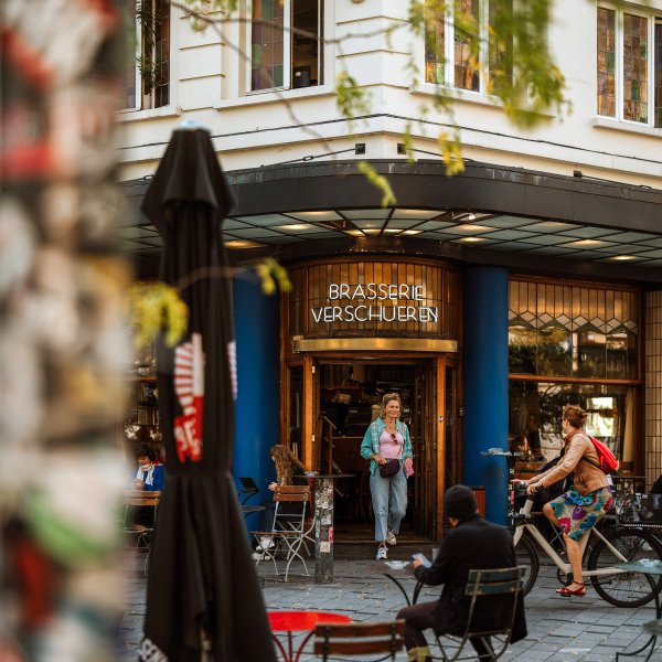 2. Brasserie Verschueren, founded in 1880, is now the neighbourhood's welcoming living room. It began as a sales outlet for the family brewery, which produced gueuze, kriek and fruit liqueurs. The building has the charm of the 1930s, with Art Deco features such as the striking canopy and tiled columns. The connection with the local football club, Royale Union Saint-Gilloise, is obvious. Supporters gather here to discuss and celebrate matches, creating a festive atmosphere.