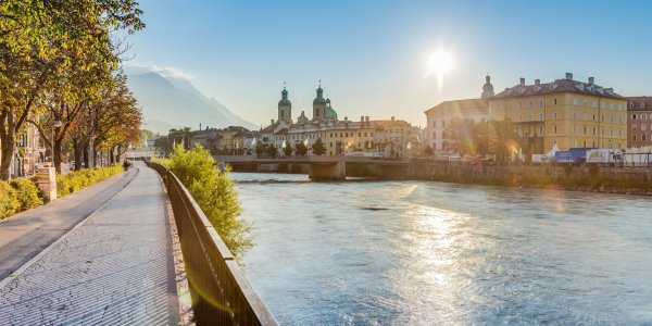 Innsbruck literally means 'Bridge over the Inn', so the city owes its existence to the river. There are cycling and footpaths on both sides of the river and you will find locals doing their daily workout there. For example, the approximately seven-kilometre route to the village of Rum, which runs along both banks, is very enjoyable. One of the liveliest stretches is the river promenade opposite the University of Innsbruck, where students and lovers enjoy the sunshine on the balustrades and benches.