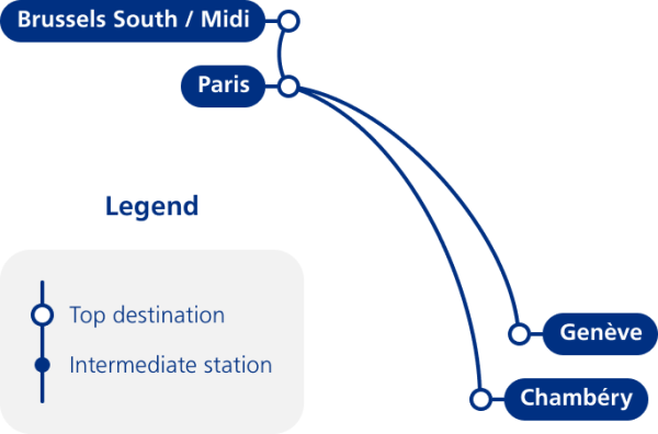 If you are travelling to France with TGV you will have to change trains in Paris. With Eurostar you will travel from Amsterdam Central Station, Schiphol and Rotterdam Central Station on the high-speed track to Paris Gare du Nord. There you take the metro. Metro tickets are available at the bar carriage on Eurostar or from the vending machines at the stations. Your layover in Paris is about an hour; the booking module takes this into account.