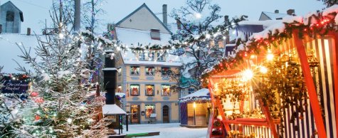 Düsseldorf verandert rond kerstmis in een spectaculair dorp van verlichte huizen en heerlijk geurende straten.