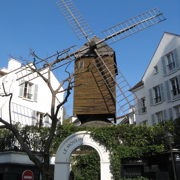 De Moulin de la Galette kent een roerige geschiedenis. Het is een windmolen uit de 17e eeuw die op een hoger punt stond in de wijk. In 1924 is de molen verplaatst naar de straat waar eerder Van Gogh woonde. Er kwam een danszaal naast de molen die te zien is op schilderijen van Renoir, Van Gogh, Israels en Toulouse-Lautrec.