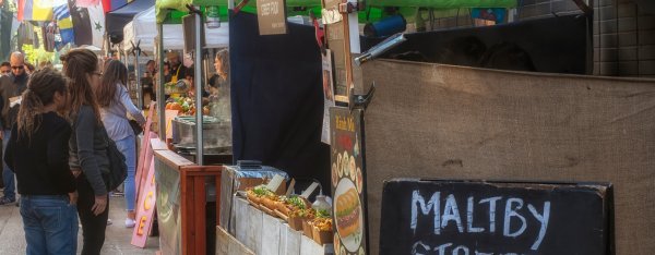 Betaalbaar en gevarieerd streetfood eet u met de locals bij Maltby Street Market. Het is misschien even zoeken, want deze knusse markt zit verstopt in een zijstraatje onder een spoorbrug. De spoorwegbogen geven het propvolle marktje z’n pittoreske karakter. Bij de sympathieke kraampjes proeft u lekkers uit alle hoeken van de wereld.