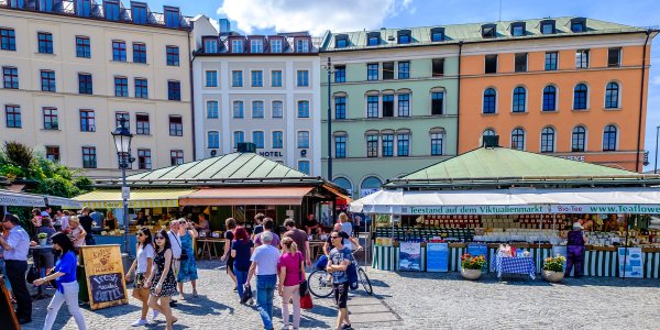 Op de Viktualienmarkt kunt u rondneuzen tussen de kraampjes, een lokaal biertje drinken of lunchen bij een streetfood stalletje. Op deze boerenmarkt halen locals hun dagelijkse boodschappen. Voor toeristen is het de perfecte plek om Beierse specialiteiten te proeven, zoals Weißwurst, Schweinsbraten en Fritattensuppe.