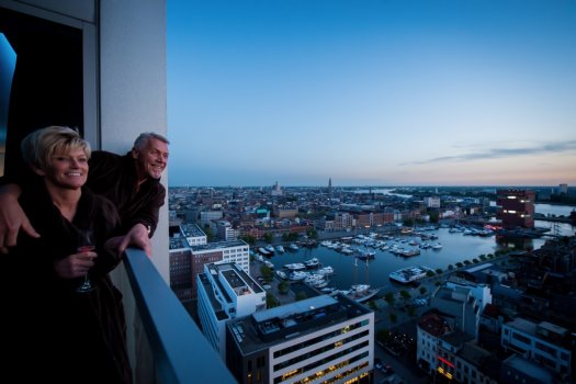 1. Wat dacht u van een overnachting op grote hoogte? Bij SkyNooz slaapt u in een luxe penthouse met uitzicht over Antwerpen. Uiteraard is het penthouse van alle luxe voorzien. Zo beschikt het appartement over een privé sauna en bioscoop waardoor uw overnachting in Antwerpen ook nog eens heerlijk ontspannen wordt. De grote foto bovenaan deze pagina laat uw uitzicht zien.