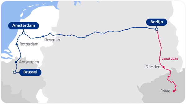 - Drie keer per week een rechtstreekse trein naar Berlijn