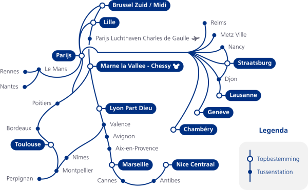 - Lijn Brussel - Noord- en Zuidoost-Frankrijk (ri. Lyon, Disneyland en Marseille)