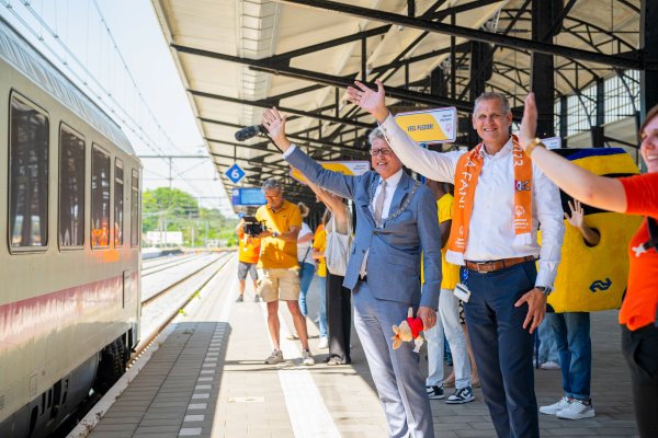 ‘Het avontuur begon bij de treinreis. Al sinds mijn elfde ben ik liefhebber van treinen. Ik woonde als kind namelijk vlak bij het spoor, dus ik was regelmatig treinen aan het spotten. En dat doe ik nog steeds graag. Zo maak ik wel eens video’s van voorbijrazende treinen, puur voor mijn eigen collectie. Voor mij is het ook de eerste keer dat ik in een internationale trein naar Duitsland reis, dus dat was al een mooie aftrap. De burgemeester van Amersfoort kwam ons zelfs uitzwaaien!’