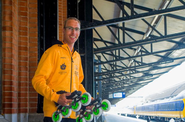 ‘Op een gegeven moment kwam mijn schaatsclubje met het idee om te gaan skeeleren. Dat was even wennen, want door de wieltjes verandert je stabiliteit. Gelukkig ging het skeeleren mij al snel goed af, en kwam ik erachter dat mijn lijf meer geschikt was om te skeeleren dan om te schaatsen. Toen werd dat mijn nieuwe hobby.’