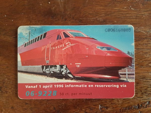 Ook waren er twee telefooncellen in de trein. Die werkten met een Franse telefoonkaart die je bij de bar kon halen voor een bedrag in Franse francs.’