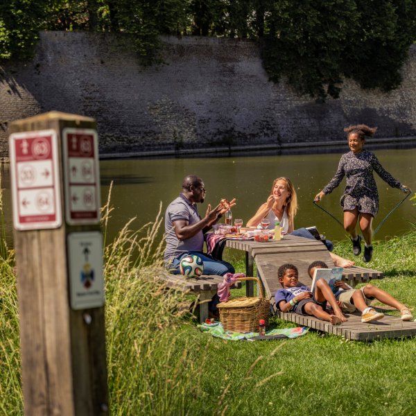 Voor de lunch neemt u plaats bij Dépot of Den Olifant, waar lokale ingrediënten tot creatieve gerechten worden omgetoverd. In de namiddag kiest u voor de humoristische Nutteloze Bordenwandeling of de rustgevende Vestingwandelroute met picknickmogelijkheid. Beide brengen u dichter bij de charme van de stad en haar omgeving. De routes kunt u halen bij Toerisme Ieper op de Grote Markt.